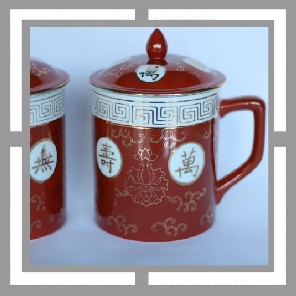 六七十年代潮彩万寿无疆茶杯一对
